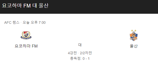클럽월드컵 진출에 성공한 울산현대 가 이제 afc 챔피언스리그 4강 2차전을 적지인 요코하마 에서 경기를 치르게 됩니다