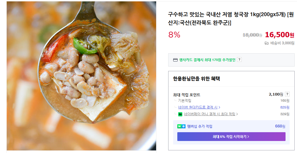 6시내고향 청국장 택배 주문 본문의 정보를 확인해서 주문 하세요