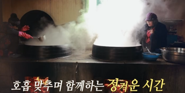 김장 작업이 끝나면 주엽 씨는 마을 사람들과 함께할 특별한 식사를 준비합니다. 이 식사는 단순한 한 끼를 넘어, 마을 공동체의 따스한 마음을 나누는 자리입니다.