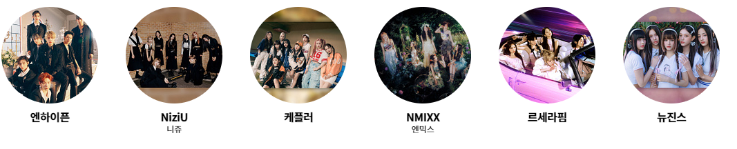 에스파는 지난 5월 세 번째 미니앨범 타이틀곡 '스파이시(Spicy)'를 발매한 후, 지난 달에는 네 번째 미니앨범 타이틀곡 '드라마'(Drama)를 공개하여 활발한 활동을 이어가고 있습니다. 라이즈는 지난 9월 '겟 어 기타(Get A Guitar)'로 데뷔하였습니다.