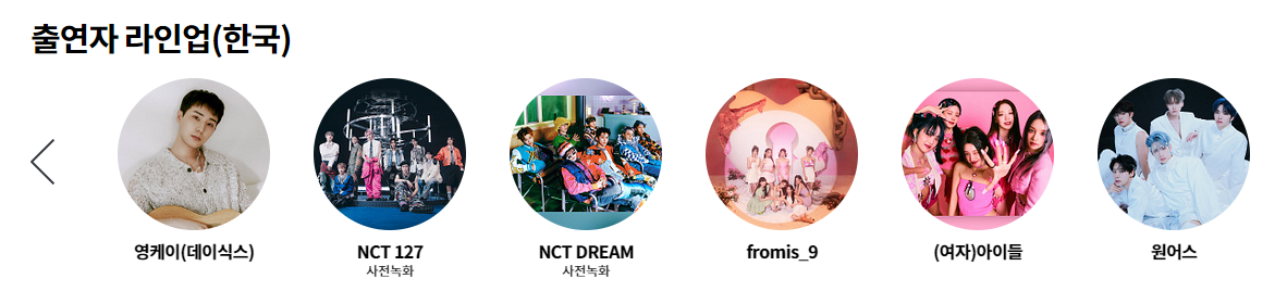 1부 라인업에는 선미, 화사, 영케이, NCT 127, NCT 드림, 프로미스나인, (여자)아이들, 원어스, 투모로우바이투게더, 크래비티, 에스파, 아이브, 엑스디너리 히어로즈, 하이키, 싸이커스, 제로베이스원, 라이즈, 판타지보이즈 등 총 18팀이 참여합니다.
