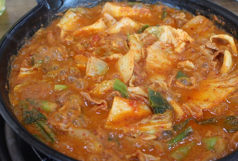 김치가 정말 맛있게 만들어진 곳이에요. 포기 김치를 손대어 주는데, 양념도 아낌없이 발려 있습니다. 초벌된 곱창에 김치가 익을 때까지 끓여주시면 우러난 국물맛이 정말 좋은데요 이 메뉴를 먹을 때 밥을 참을 수 없었고, 소주도 참을 수 없다고 합니다
