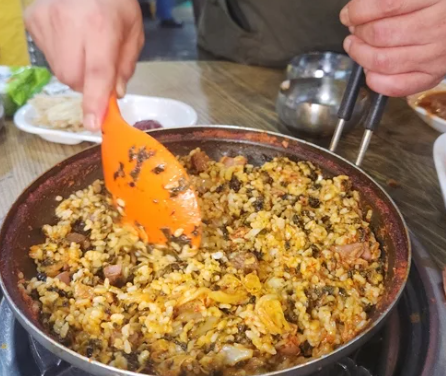 그리고 밥에 고기와 국물을 넣고 비벼 먹으면 눈이 절로 감긴다고 하는데요 시원한 소주와 차가운 얼음까지 더해져 찰떡 궁합이라고 합니다 볶음밥을 주문하면 사장님이 직접 김가루와 참기름을 아낌없이 뿌려주시고, 골고루 잘 섞어 볶아주십니다.